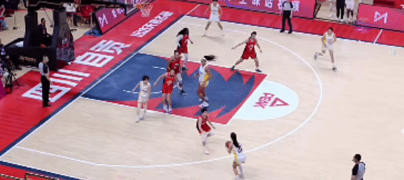 两队随后进入到对抗的胶着期,你来我往,斗智斗勇。下一个回合,王思雨倒地抢球,然后传给队友!